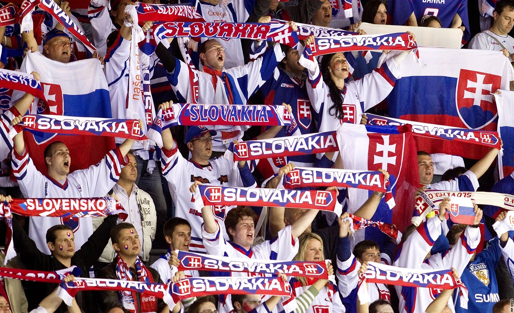 SLOVENSKO. Slovenští fanoušci na domácím mistrovství příkladně fandí svému týmu.