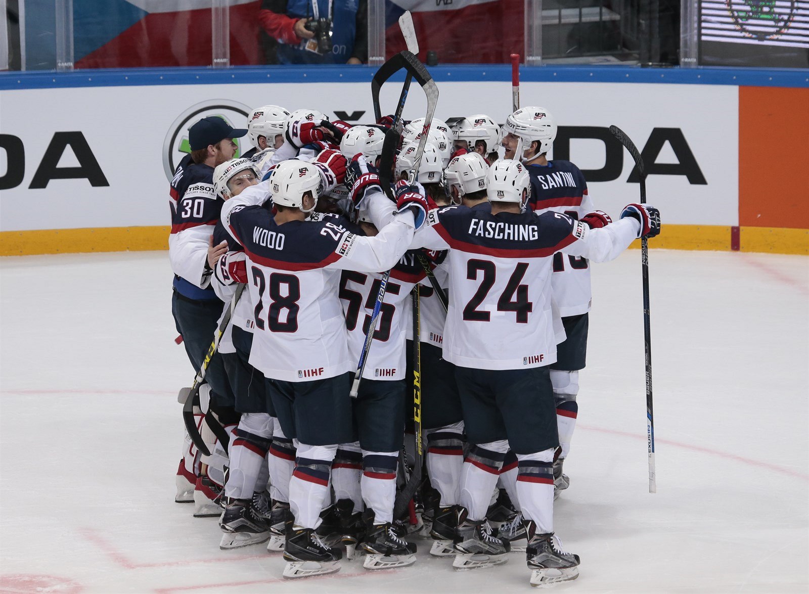 Američtí hokejisté slaví postup do semifinále MS.