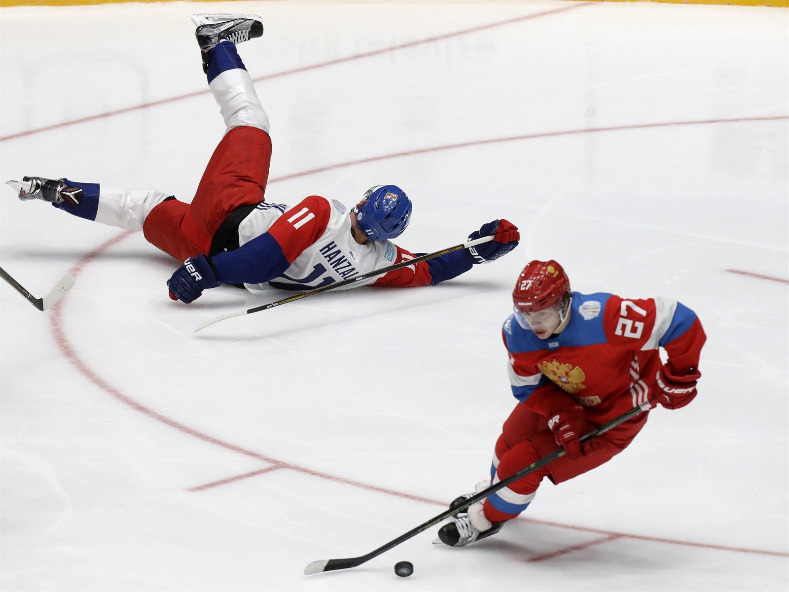 Michal Kempný se přetlačuje s Rusem Vladimirem Tarasenkem.